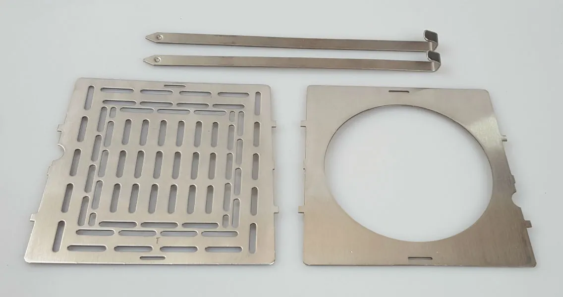 The Accessory Kit for the 5″ Folding Firebox Stove includes the most popular accessories sold with the stove. The kit includes: 2x Standard Firesticks (1 pair) 1x Grill Plate 1x Boil Plate Standard Firesticks: Several of the many possible Firebox setups require four Fire Sticks.Ā TheĀ firesticksĀ have been updatedĀ to be pointed at the end for ease of skewering food (kabobs!).Ā Insert the Fire Sticks through any two height position diamond shaped holes. The Fire Sticks can also be used to support cooking vessels on top or within the side walls of the 5″ Firebox or use them as skewers to cook over an open flame or roast to perfection over hot coals. Same as supplied with 5″ Firebox Weight: 34g Length: 17.8cm Material: Stainless Steel Grill Plate: Attaches to the top of the 5″ Firebox Gen 2 creating a great grilling surface for outdoor cooking (Not intended as a pot support over a high temp fire). Use charcoal briquettes as your heat source for extended use or slow roasting meats. Weight: 102 g Length: 12.7 cm Width: 12.7 cm Material: Stainless Steel Boil Plate: Clips securely onto the top of the Folding Firebox camping stove, converting the Firebox into an efficient boiling system to be used with a 1 Litre or 40oz stainless steel water bottle, or any of the stainless steel or titanium space saver cups which fit over the end of a 1 Litre Nalgene water bottle. The Boil Plate boxes in the burn chamber concentrating heat around the cookware, allowing you to boil or cook with a very small fire using very little fuel. Weight: 68 g Length: 12.7 cm Width: 12.7 cm Boil Plate hole diameter: 9.84 cm Material: Stainless Steel (FBACCESSKIT5)