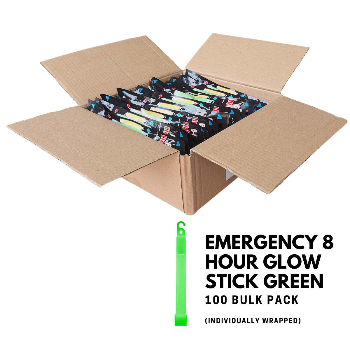 Emergency 8 Hour Glow Stick GreenĀ 100Ā Pack The Emergency 8-Hour Glow Stick is ideal for emergency short to medium-term lighting or to gain the attention of emergency services. Great for kids during power failures or lighting walkways etc. Now available in a bulk 100-pack! Ideal for: Power outages Emergency Kits Camping Hiking Signalling Trail marker Scouts Army / Military use Specifications Quantity: 100Ā Pack Individually wrapped Glow Sticks Colour: Green Dimensions: 150mm x 15mm (6 inch) Includes hanging hook Runtime: 8+ hours each Suitable for use with Military Map Reader (click here) (GlowGreen8hr100pk)