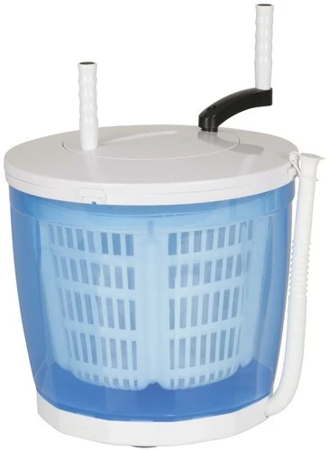 Wash Rinse Spin Dry ThisĀ Portable Washing Machine is aĀ clever and easy way to keep your clothes, delicates, and small towels clean at the campsite. Thereās no power required, and water use is kept to a minimum. To operate, simply drop in the items that need to be washed, pop in some washing liquid, add water, lock the lid on, then hand crank for a few minutes using the fold-out handle. Suction cups on the base help keep the tub in place, and an internal agitatorĀ provides a more effective clean as you spin. A flexible hose with a plug enables you to drain the water easily, without the need to strain your back carrying or lifting the tub. Once the water has been drained, you can hand crank the basket again to spin dry the contents. The basket has a generous 2kg capacity for items such as bras, t-shirts, underwear, socks, face towels, and more. When not in use, the handle folds away for easy storage. Ideal for: Camping Caravan Power Failure Off Grid Features: Hand-powered wash, rinse & spin 2kg capacity Flexible drain hose with plug Folding handles for travel Removable Basket for easy cleaning & drying Suction Cups for stability while in use Dimensions: 340mm x 345mm Weight (Dry): 2kg (RCC422)
