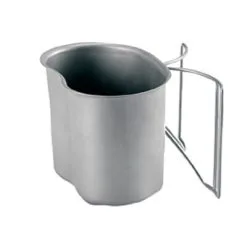 U.S Military S/S Canteen Cup 1qt  The US Army Stainless Steel Canteen Cup is made from heavy guage steel and features large folding butterfly handles for easy use and pouring. Specifically designed to fit over the bottom of a 1qt US Military Canteen and then inside a canteen pouch (canteen and pouch not included). This genuine canteen cup is required for deployment, field training and CIF turn-in for the US Army. Features: High quality Stainless Steel Suits our standard 1qt Military Canteens Large folding ‘Butterfly’ Handles US Military Issue Specifications: Weight: 257g Dimensions (handles folded): 13.5 x 8.7 x 9.5 cm Material: Stainless Steel Genuine US Issue Made in USA (1DCUSSS)