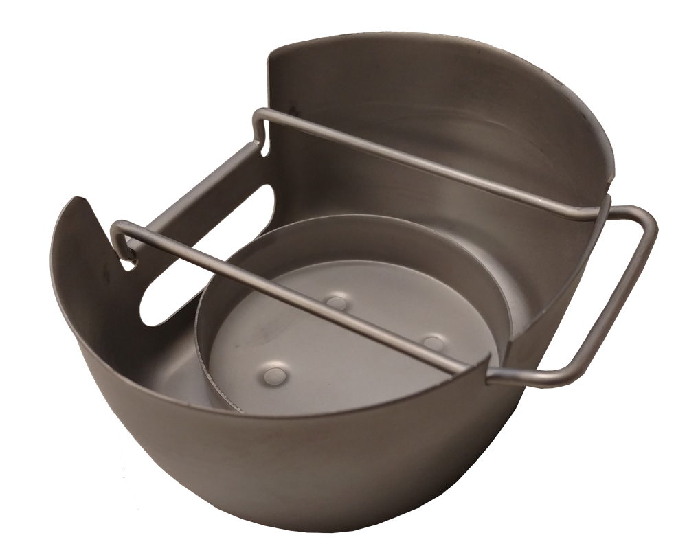 Military Mk1 Crusader Solid Fuel Cooker An innovative solid and gel fuel field cooker. Perfectly compact to carry in your pack. Simply add your solid fuel of choice then place your cooking pot or cup on the cooker arm. Boil Water, heat up MRE or cook your meal with the MK! Crusader Fuel Cooker. Features An innovative new solid and gel fuel field cooker Complete with an integral folding arm Your cooking pot/cup sits neatly into the cooker allowing room to light fuel A small slot provides efficient air intake The walls of the cooker provide wind shielding Integrates with crusader metal cup and water bottle Specifications Material: High-Quality Steel Colour: Black PTFE coated Size: 14cm x 10cm x 10cm Weight: 175g (CN006)