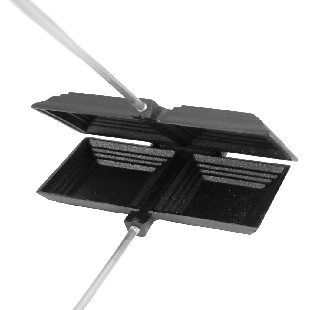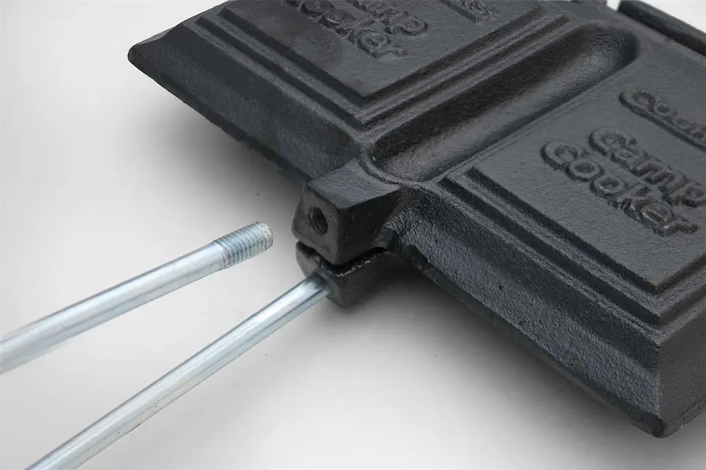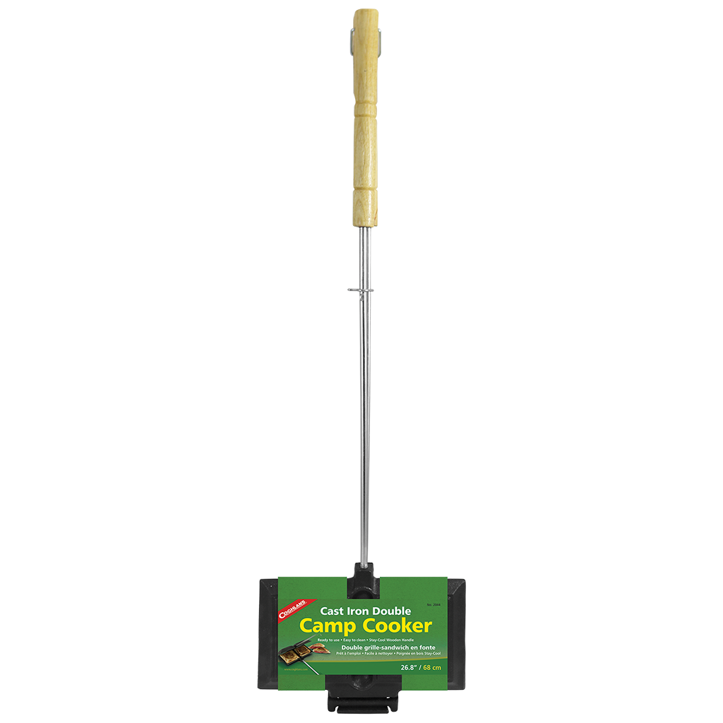 Camp Cooker Double Toasted Sandwich Maker Perfect for couples & families, this twin jaffle maker is made from durable cast iron. This toastie maker offers a convenient way to toast sandwiches, grill meats, and cook delicious desserts over an open fire or nestled between coals. The Camp Cooker has a two-part hinge and wooden handles that unscrew, making cleaning easy and allows it to be broken down for easy transportation. The cast iron comes pre-seasoned, so it features a non-stick finish that needs to be renewed after each use. It features a stay-cool wooden handle that is easy to use and latches together with an S hook around each handle. The cast-iron plates are heat resistant and will not melt when used over an open fire. Features Great for making perfect pies, Jaffles, or grilling meat Nests in the coals for easy cooking Break-apart hinge design allows for easy cleaning Instruction and recipe book included Pre-seasoned Cast Iron construction Specifications Handle Length: 52cm Complete length with handles: 68cm Weight: 1.9kg (COG2044)