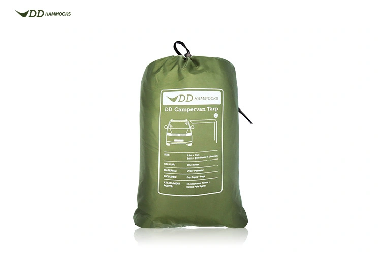 DD Campervan & Caravan Awning Tarp with Sail Track Bead Open up a whole new world of adventure with the DD Campervan tarp – a lightweight awning system designed to be used with your camper on those far-flung trips. The tarp can be used as an overhead awning, threaded directly through the awning rail on the left-hand side of the van (8mm on the VW), or as a side-wall in conjuction with the the built-in awning (6mm). Or for shelter on both sides, why not both! Overhead: Once attached to the van, the outward edge of the tarp requires 2 x poles for support (if the tarp is used overhead), guyed out to provide stability. An optional third pole can be placed in the centre of the tarp, to give more headroom and aid in water run-off on wet days*. The whole process takes only a few minutes, leaving you free to take in the views! Side-wall: If used as a side-wall, simply thread the tarp into the channel on the edge of the awning, peg out the bottom, and attach the sides to the awning frame to secure it in place. Weighing just over 1Kg and packing down far smaller than most other dedicated awnings, you can easily fit this into your camper without taking up space for even more adventure gear! Features Ideal for Caravan Awnings & Campervans with 6mm & 8mm Beading Channels Two beading sizes – 6mm & 8mm Can be used as an overhead awning or a side-wall to pre-fitted awnings Fully stormproof – 3,000mm-rated UV50+ protective material Includes adjustable buckles for attaching to awning frames Supported with 2 Poles – 1 on each corner & 3rd central pole optional (poles sold separately) Specifications Size: 2.5m x 2.5m Colour: Olive Green Weight: 1120g (exc pegs) Includes: 1x DD Campervan Tarp, Guy Ropes and Pegs (DDCampervanTarp)