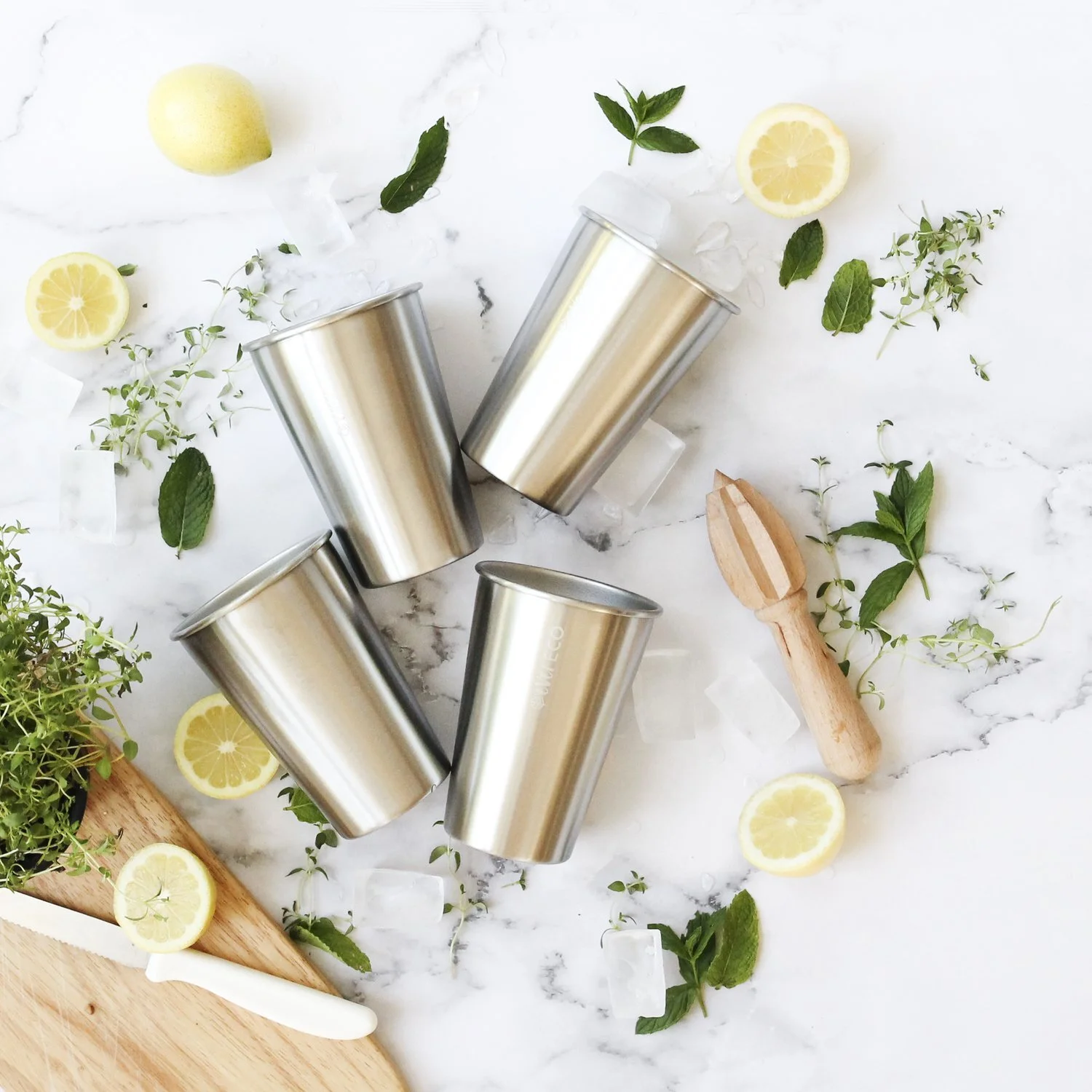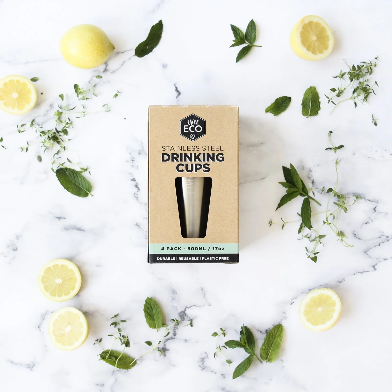 Say goodbye to toxic plastic cups and breakable glasses! Our stackable stainless steel drinking cups are a practical and durable alternative, perfect for both kids and adults. Ideal for picnics, camping, festivals, travelling and plastic-free sipping at home. Features: Made from premium grade 304 (18/8) stainless steel Non Toxic: Free from BPA, PVC, lead and phthalates Stylish modern brushed surface exterior Non Porous: Hygenic stainless steel Electropolished interior that wonât retain or impart flavours 4 x 500ml Cups included (PM53)