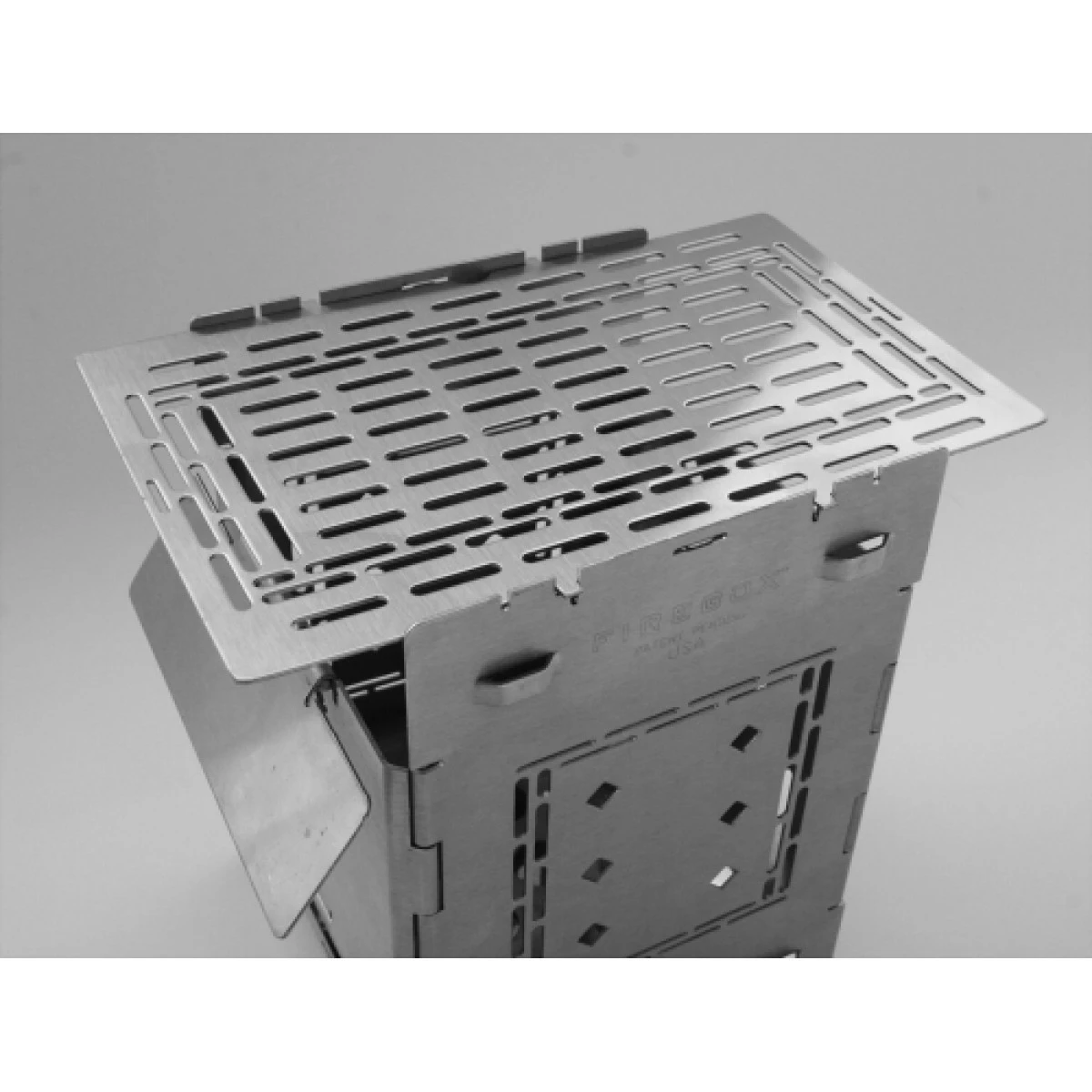 The 5″ Extended S/S Grill Plate is as wide as the 5″ Firebox Gen 2 is tall, giving you more grilling versatility. It attaches to the top of the Firebox creating an expanded grilling surface (not intended as a pot support over a high temp fire). Use charcoal briquettes as your heat source for extended use or slow roasting meats. Packs easily with S/SĀ 5″ Firebox Gen 2 Weight: 150 g Length: 19 cm Width: 12.7 cm Material: Stainless Steel (FB-015)