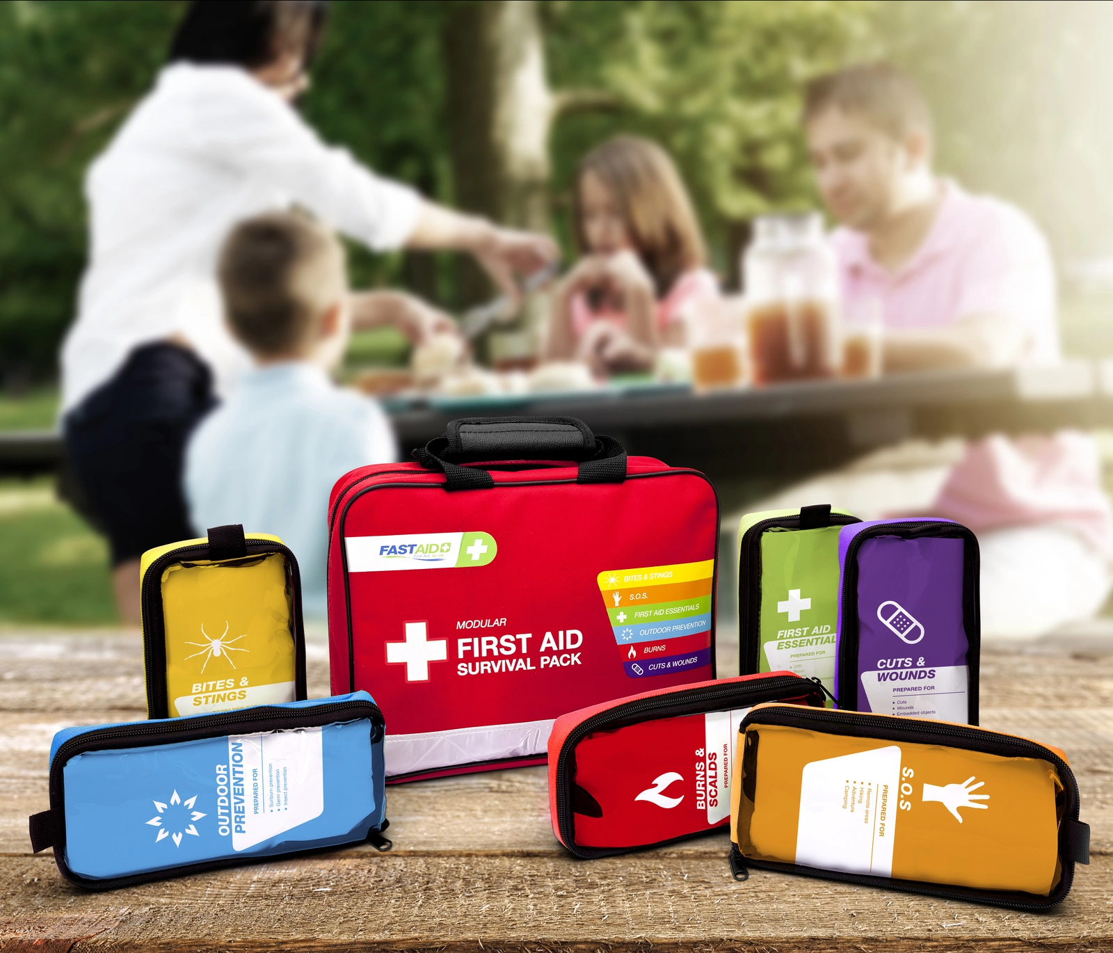 Professional 302 Piece Modular First Aid Survival Pack Whether it’s indoors or outdoors, at home or while you are travelling, you don’t want to be caught unprepared in a first aid emergency. The Modular Professional First Aid Survival Pack is supplied with six individual ‘Mini Kit’ modular internal compartments to enable rapid response in emergencies. Each module is removable and colour coded for easy location and organisation. All supplied in a soft carry case with handle and reflective strip, this kit is ideal for a range of outdoor uses. Features Each Module is labelled and colour codedĀ for simple organisation Extensive range of supplied components ARTG Registered No. 128314 302 Quality Components Six Individual removable ‘Mini Kit’ modules Perfect for an Ultimate Household First Aid KitĀ or have Camping Specifications Size: 32cm x 25cm x 10cm Weight: 2.0 kg 12 Month Warranty This Kit Contains: Module #1: Bites & Stings 1x Afterbite Itch Eraser 14ml 1x Pair of Nitrile MedicalĀ Gloves 1x Heavy Crepe Bandage, 10cm 1x Instant Ice Pack 1x Magnifying Glass 1x Tick Remover 1x Large Triangular Bandage 5x Non-sting Wound Wipes 1x Bites & Stings Treatment Card with Colour Photos of Snakes and Spiders 1x Module Soft Pack Module #2: Burns & Scalds 1x Aloe Vera Spray Sunburn Relief, 50mL 1x Hydrogel Burn Gel Dressing 10x10cm 3x Hydrogel Burn Sachets 1x Burn Spray 50mL 1x Conforming Bandage 1x Pair Nitrile Medical Gloves 1x Small Confoming Bandage (5cm x 7.5cm) ā1x MediumĀ Confoming Bandage (7.5cm x 10cm) ā1x LargeĀ Confoming Bandage (10cm x 20cm) 1x Roll of Medical Tape 1x Burns Treatment Info Card 1x Module Soft Pack Module #3: Outdoor Prevention 1x Anti-bacterial Hand Sanitiser 100x Cotton Tips 1x Insect Repellent Spray 1x Non-Sting Wound Wipes 1x Module Soft Pack 1x Digital ThermometerĀ Module #4: Cuts & Wounds 25x Fabric Adhesive Plasters 72 x 19mm 50x Plastic Adhesive Plasters 72 x 19mm 1x Combine Dressing 10cm x 10cm 1x Small Conforming Bandage (5cm) 1x Large Conforming Bandage (10cm) 1x Pair Nitrile Medical Gloves 1x Heavy Crepe Bandage (10cm) 1x Non Adherent Dressing (10 x 7.5cm) 1x Small Plastic Clip Seal Bag ā1x MediumĀ Plastic Clip Seal Bag ā1x LargeĀ Plastic Clip Seal Bag 1x Roll of Medical Tape 10x Wound Closure StripsĀ 1x First Aid Treatment Card 1x Module Soft Pack Module #5: First Aid Essentials 1x Antiseptic First Aid Spray 2x Conforming Bandage (7.5cm) 1x CPR Mask with Valve 2x Eye Pads 3x Eyewash 1x Stainless Steel Forceps (12.5cm) 10x Gauze Swabs (7.5cm x 7.5cm) 12x Safety Pins 1x Clothing Cutter Shears 10x Splinter Probes 1x Large Triangular Bandage 4x Non-Sting Wound Wipes 1x First Aid Booklet 1x CPR Information Card 1x Module Soft Pack Module #6: SOS Emergency 1x Compass with Whistle 1x Emergency Silver Rescue Blanket 1x Notebook & Pencil 1x Rain Poncho 1x Roll of PVC Duct Tape 1x Weather Thermometer with Whistle 1x Aluminium Torch with Carabiner 1x Loud Whistle 1x Module Soft Pack Ā Intended Purpose A convenient collection of equipment and materials for the rapid, initial treatment of an injury. Health Warning Always read the label and follow the Directions for use. Ā (FAEE30)