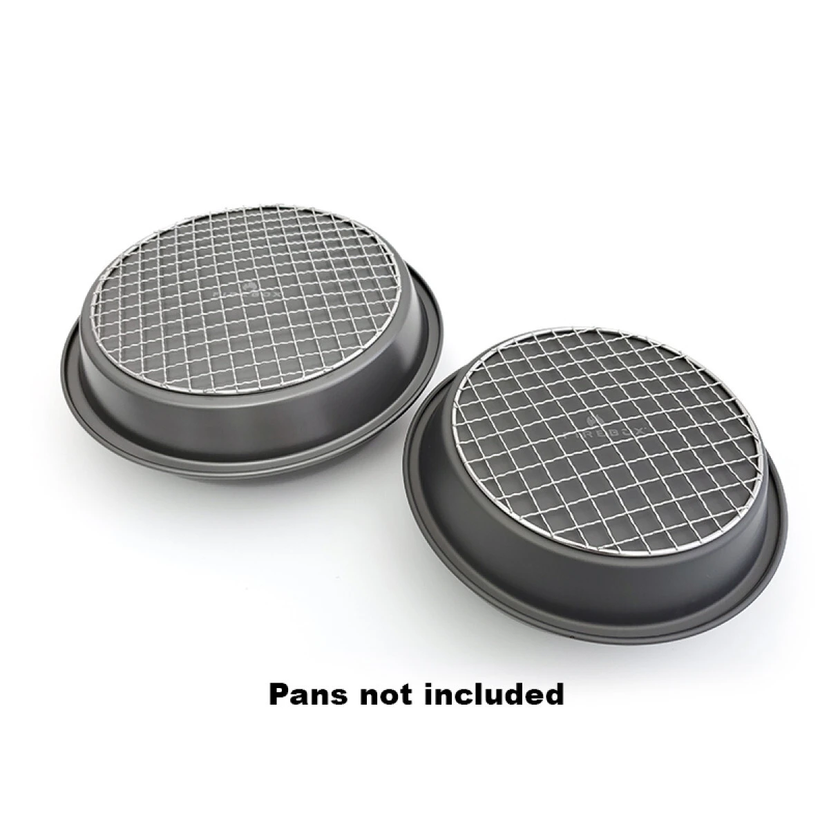 For use when baking with the Large Ultra Cook Kit. Placing coals directly on top of the aluminum pans will quickly “suck” the life out of the coals due to the high conductivity of the aluminum pans. By raising the coals off the aluminum the coals stay hot for MUCH longer! Specifications: Stainless Steel Size: 21.6cm (8.5″) Weight: 85g (3oz) (LCR85)