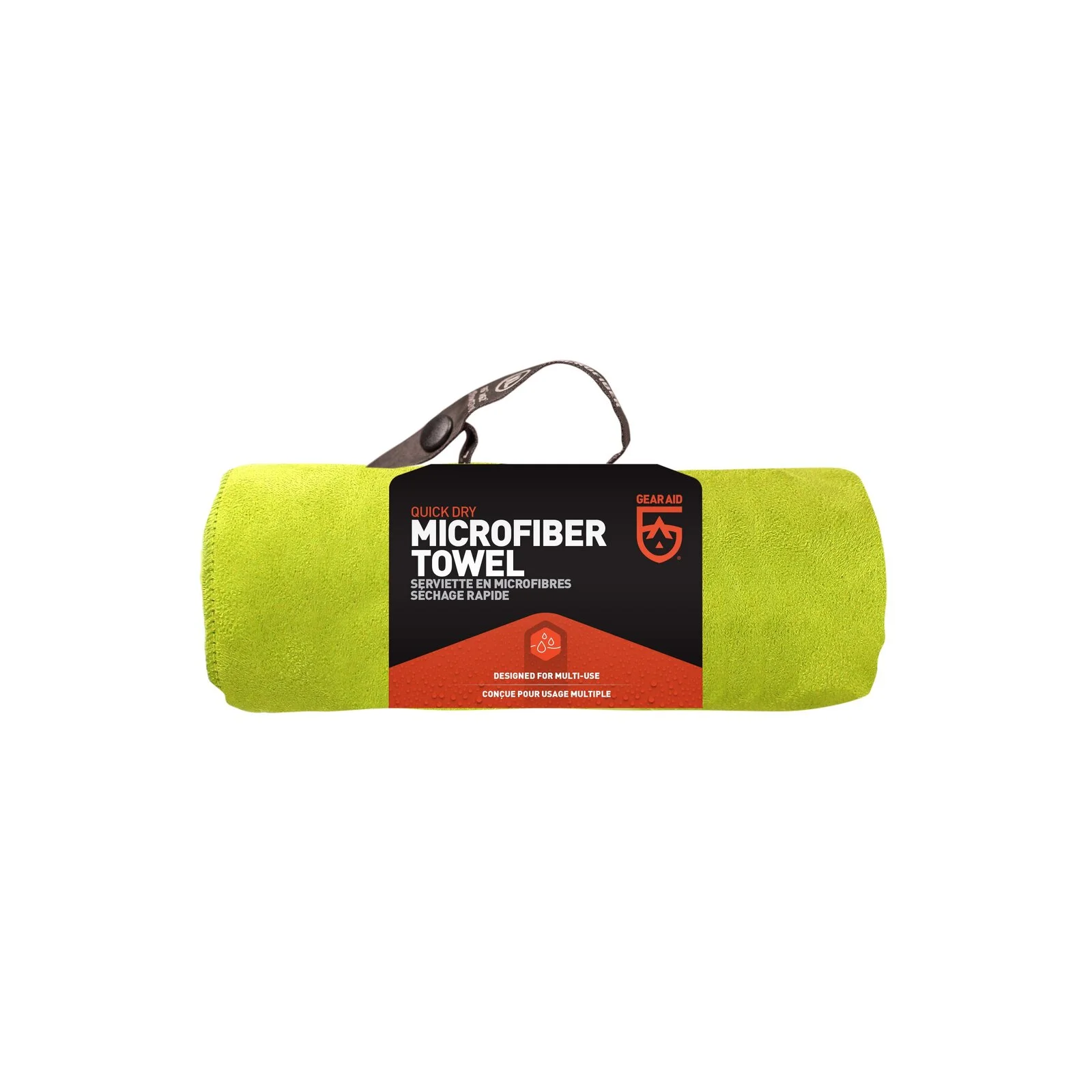 Gear Aid Quick Dry Premium Microfiber Towel Medium Take the Quick Dry Microfiber Towels anywhere β camping, backpacking, in the field, or to the beach. As an essential piece of travel gear, it dries fast and packs down to the size of a water bottle. The micro suede fabric is soft, dense and gently removes oil, dirt and perspiration. Plus, it resists odours with a powerful antimicrobial treatment. The included mesh storage bag can be used for toiletries, phones, or keys. Stay fresh and travel light on your next trip by tossing a Quick Dry Microfiber Towel in the car, backpack, or luggage. Features Super Absorbent β Absorbs five times its weight in water and dries quickly with the attached hanging snap loop Compact & Lightweight β Full-size towel folds down to the size of a water bottle and weighs under 160 grams Antimicrobial β Silver ion treatment helps prevent odours and keeps it fresh Packable β Store it or toiletries in the mesh black or coyote brown storage bag Multipurpose β Features sewn grommets for use as a blanket, tarp, or sunshade Specifications Size: 50.8cm x 101.6cm (Medium) Material: Microfiber Polyester Antimicrobial Treatment: SILVADUR Towel Weight: 158 grams Colors: Coyote or SandΒ (Choose Colour) Bag Size: L-Β 20cm x W – 7.6cm x H –Β 10.1cm Bag Weight: 56.6 grams (GearAidTowel_MED_P)