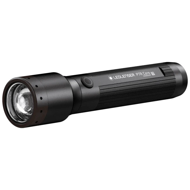 The versatile P7R Core torch offers exceptional power in a compact design. It also offers forward-thinking technologies like the Smart Light Technology for custom light functions. The lamp is powered by a 21700 Lithium-ion battery, which can be easily changed by opening the end cap. Thanks to Ledlenser’s Flex Sealing Technology, the P7R Core is protected against water and dust, and can even be used underwater for a short time. Its patented Advanced Focus System works with up to one meter of water depth. This makes the P7R Core the ideal torch for every occasion. Features: Massive 1400 lumen output Up to 300 metre range Advanced Focus System (AFS) – for efficient, precise flood and spot lighting Smart Light Technology – for custom light functions Flex Sealing Technology – provides high protection against dust and water (IP68) Constant Light – for constant luminous flux over a long period of time Convenient Charging – of the battery with Magnetic Charge System IP68 – Protection for submersion in water up to 1.5m deep for up to 30 mins Rechargeable – includes magnetic USB charge cable and 1x battery Modes: High Power – 1000 lumen high light output for every situation Mid Power – 440 lumen medium light output for every situation Low Power – 15 lumen economical light for long battery life, glare-free reading and working Boost – 1400 lumen short-duration maximum power for more brightness Blink – automatic emission of light impulses at regular intervals Position – two short pulses of light, repeated three times, to alert others of your location S.O.S – the distress signal the light emits is SOS in Morse code (3 x short, 3 x long, 3 x short) Strobe – flashes of light with a confusing blinding effect for, among other things, self-defence. Specifications: LED Configuration: 1 x Xtreme LED (Cool White) Luminosity: MAX 1400 lm – MIN 15 lm Lighting Range: MAX 300 m – MIN 15 m Battery Duration: MAX 90 h – MIN 2 h CRI: 70 Colour Temperature: 6500 Battery: 1 x Li-ion 3.7V (21700) Battery Capacity: 4800 mAh Water Resistance: IP68 Rechargeable Length (defocused): 158 mm Head Diameter: 35 mm Weight: 202 g Click here for Technical Data Sheet (502181)
