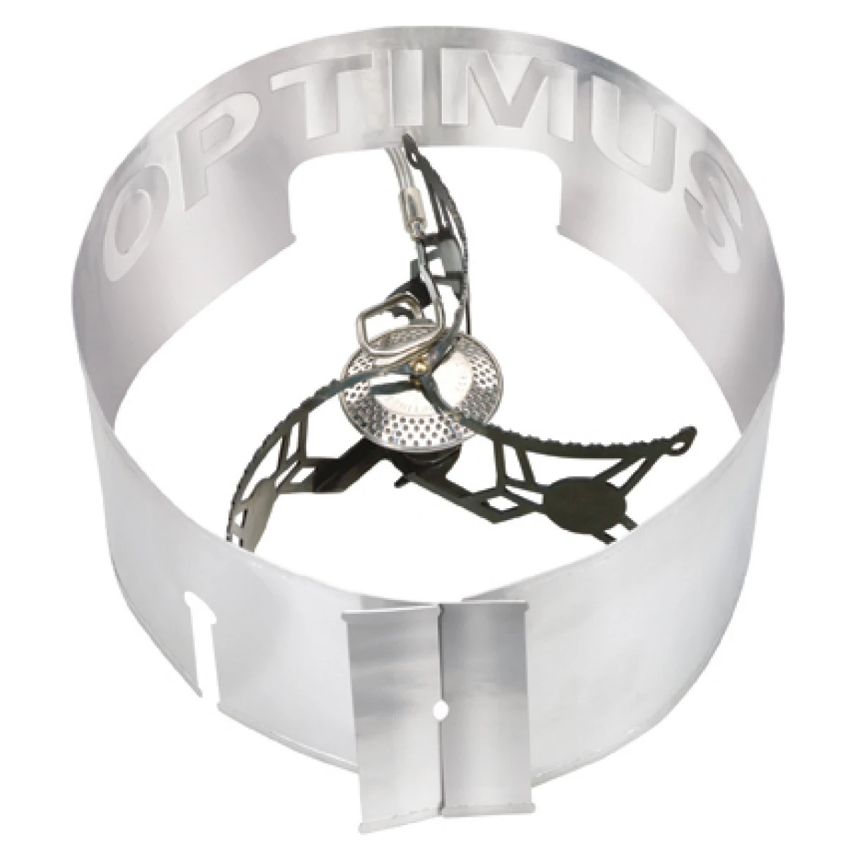 Optimus Wind Shield Wind Foil Decrease boil time and save fuel when cooking with this lightweight aluminium windscreen. Same as supplied with the Optimus Nova and Nova+ stoves. Quickly fits around the stove and adjusts perfectly to the size of the pot due to its two setting positions. Ideal for harsh windy conditions. Smooth rounded corners for easier handling. Features Increases Efficiency and reduces heat loss when cooking Lightweight Smooth rounded corners Specifications Material: Aluminium (102031)