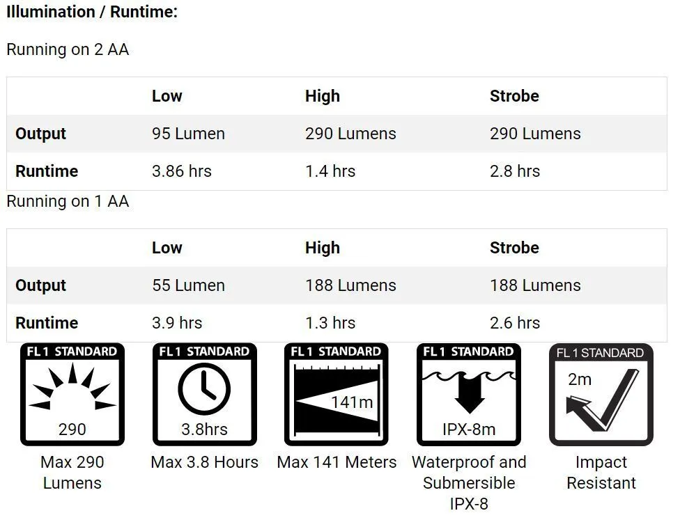 PowerTac Lance Compact Pen Light 290 Lumens LED The PowerTac Lance is a AA-powered LED flashlight that churns out a super bright 290 lumens. The versatile light is capable of running on either one or two AA batteries, giving you a couple of options on output. The Lance is fitted with a CREE XP-G2 LED and is able to shoot a beam out up to 141 meters. Measuring in at just under 137mm, the Lance is machined from aero-grade aluminum alloy, with a military grade hard-anodized finish, making it lightweight and very durable. The body of the Lance is partially rubberized for an easy, comfortable grip. Being IPX-8 rated waterproof, the Lance is protected, in the event, it is accidentally dropped in a puddle or it begins to rain. Keep this light in your car, at home or in your pocket, using the included stainless steel pocket clip. Features Crenellated bezel for emergency situations Partially rubberized body for an easy, comfortable grip Constant current circuit design High-efficiency optical lens Reverse polarity protection Stainless steel pocket clip Constructed from aero-grade aluminium alloy HAIII military grade hard-anodized finish Impact-resistant to 2 meters Waterproof in accordance with IPX-8 standards Specifications LED: CREE XP-G2 (R5) Battery: 1x or 2x AA – Alkaline, Lithium, NiMh (Batteries NOT included) Max Beam Distance: 141 meters Dimensions: (L) 136.8mm (Body Diameter) 18.2mm Weight: 45g (excluding batteries) (Lance-G2)