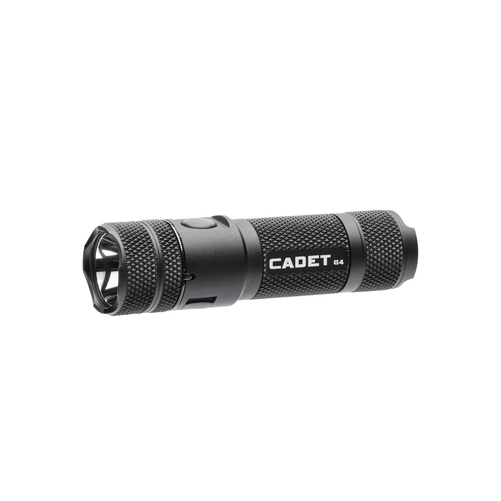 PowerTac Cadet G4 1200 Lumens Rechargeable LED Flashlight The Powertac Cadet-G4 is a subcompact tactical and edc light. This pocket light offers an incredible 1,200 lumens on a single RCR123 rechargeable battery. A bidirectional clip allows for deep carry and can be clipped on the brim of a hat. Its compact size and its high output makes it ideal for mounting on a PDW or for everyday carry. Features Simple user interface 1,200 lumens with 240-meter throw Ideal EDC size Dual button operation with instant strobe Ideal for mounting on PDWs 6 different settings that include 5 levels of brightness plus a strobe Deep-carry bidirectional pocket clip Can be clipped on to brim of hat Auto memorization for all settings Digital circuit-control technology for max performance and long runtime Reverse polarity protection protects from improper battery installation Preserves LED and electronic components with a superior heat sink designed for quick heat dispersion Resists water damage by a precision O-ring sealed design to provide reliable use in extreme conditions Machined from aircraft grade aluminum with type III anodized finish Tempered glass to resist breaking and scratching upon impact Double coated glass lens to give maximum OTF (Out The Front) brightness and beam distance IPX7 waterproof Submersible up to 1.5 meters under water Specifications Type: LED Battery:(1) RCR123A/16340 Rechargeable Li-ion or (1)CR123A Length: 84.6mm Bezel Diameter: 25.4mm Body Diameter: 22.56mm Weight: 60g (without battery) Includes: Cadet Flashlight, RCR123A Battery, Magnetic USB Charge Cable, Spare O-Rings, Lanyard, Instruction Manual (CAD-G4)