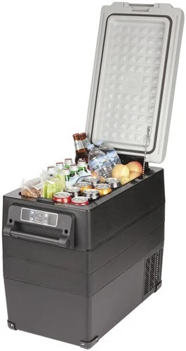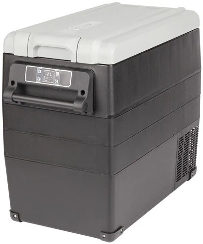 55L Rovin Portable Fridge with Bluetooth ⢠Digital Control Panel ⢠Bluetooth ⢠Both 12/24V & 240V mains power supplies included Boasting 55 litres of internal cooler space, this portable compressor refrigerator can provide temperatures down to -20°C. Supplied with both AC and DC power leads you can use it at home or while traveling. Pair its built-in Bluetooth with your smartphone and have complete control of your temperature while it’s in your boot. Other features include digital temperature controls, a reliable compressor, and a sturdy hard plastic shell that will keep it in shape even on the bumpiest of rides. It comes with a 2-year warranty for peace of mind. Features: ⢠55L capacity â˘Â -20°C to + 20°C ⢠Dual Zone Fridge / Freezer â˘Â Removeable internal Basket ⢠Heavy Duty Handles (for tying down on fridge slides etc) â˘Â Internal LED light ⢠High efficiency: Max or Eco settings ⢠Smartphone app control via it’s built-in Bluetooth ⢠12/24VDC power adaptor included ⢠240V mains adaptor included ⢠3-Stage Low Battery Cutout â˘Â 2 Year Warranty Specifications: Power Consumption : 45.0W (up to 3.8amps @ 12 volt) Dimensions: 69cm x 34.5cm x 54.4cm Weight (net): 12.1kg Refrigerant: R134a Internal Fuse: 15amp Built-In Bluetooth. Requires Rovin Fridge app from iTunes App store (Apple Devices) or Google Store (Android Devices) What’s in the Box: 1x 55 Litre Portable Compressor Fridge / Freezer 1x Internal (removable) Basket 1x DC Power Cord 1x AC Mains to DC Power Cord 1x Instruction Manual Protective Insulated Cover is available as an optional extra. Please note due to it’s size freight charges apply at the checkout.  (GH2240)