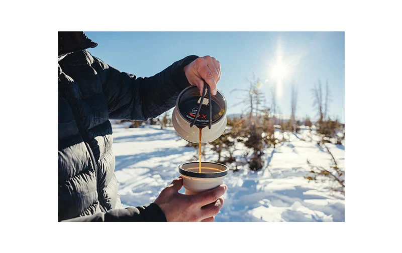 Sea To Summit X Pot Kettle 1.3L The perfect all-in-one flat-pack solution for fast and light adventures, the X-Pot Kettle utilizes the same award-winning innovative, space-saving and functional features as the other products in the X-Pot series. The collapsible food-grade silicone sidewalls allow it to pack flat for compact storage, while the hard anodized aluminium base conducts heat well, making it perfect for slow simmering or fast boiling. Its clear Tritan® lid provides easy viewing of contents, while the built-in spout and double glass-reinforced nylon 66 handles make pouring also a breeze. The 1.3L size is ideal for boiling water for your morning brew or small meals like oatmeal or soup, while the more generous 2L size can be used as an all-rounder cooking pot. Features: BPA free, food grade, heat-resistant silicone. Hard anodised aluminium base conducts heat really well for outdoor gourmet cooking. Durable, translucent pot lid shortens boil time – no need to lift the lid to check the boil. Two glass-reinforced nylon 66 handles support the upper rim and improve control when pouring. Measurements moulded into the sidewall. A silicone strap secures the lid and handles during transport. Nests with other X-Series products Specifications: Colours: Sand or Lime (Please Select Colour) Weight: 186g Material: BPA free, food grade, heat resistant silicone and hard anodized 6063-T6 aluminum base (AXKET1.3_P)