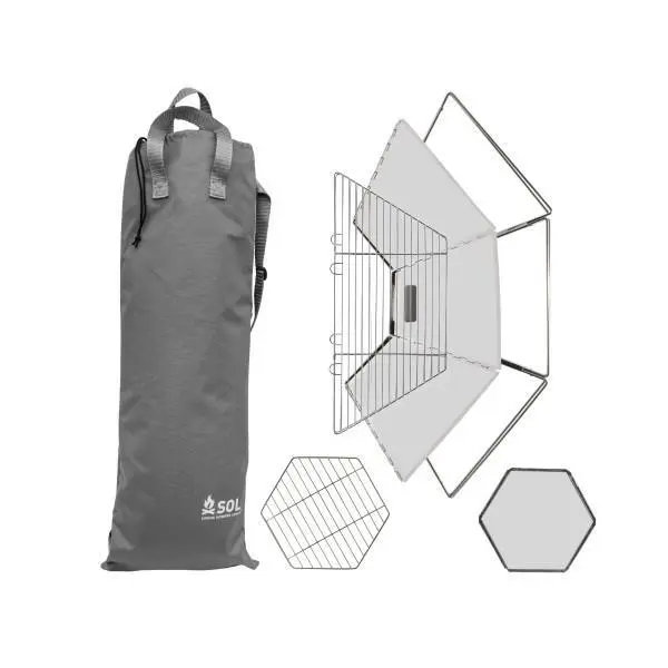 SOL Packable Fire Pit Set up the SOL Flat Pack Fire Pit with ease for a bonfire or barbecue. The hexagonal design provides a sturdy set-up on any terrain with vents in the spacious base for improved air flow. The removable, food-grade grill top is large enough to feed the whole family and is dishwasher safe. Fold up and pack in the included bag featuring an adjustable shoulder strap and room for extra gear or fuel. Designed for use with wood, charcoal, and other biofuels. Extend the shoulder seasons or use all year round, the SOL Flat Pack Fire Pit is portable, durable, and ready for adventure. Features: Grill & Fire Pit – A packable 2-in-1 food-grade grill and fire pit. Stable Hexagonal Base – Set-up is easy with a spacious yet sturdy hexagonal base. Multi-Fuel Compatible – Conveniently designed for use with wood, charcoal, and other biofuels. Take Anywhere – Fold up and place in the included bag featuring an adjustable shoulder strap and room for extra gear. Specifications: Size: 61.97 cm x 26.4 cm x 4.3 cm Weight: 2.5 kg (0140-1014)