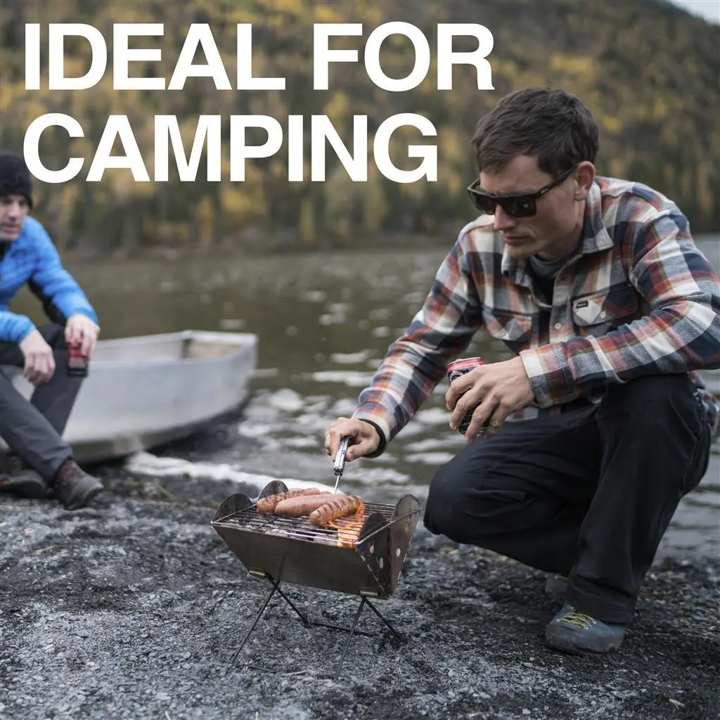 UCO Mini Flat Pack Grill & Firepit The Mini Flatpack portable Grill & Fire Pit serves 2-3 people and packs compact for easy transportation to the beach, campsite or barbeque. Made with quality Stainless steel construction for durability and easy maintenance. It has a quick 30-second set-up and you are ready to go. All you need to do to set up this grill is unfold it and place the grates on top. Has a stable base for safe grilling. The sides of the grill serve as a windbreak for grilling in windy conditions and it can be used as a firepit to burn natural fuels you find along your travels. Also helps you leave no trace when you are done. Additionally, it is Dishwasher safe, easy to clean once you are back home. Perfect for Hiking. Features Durable stainless steel construction Quick 30-second setup Can be used as a fire pit Stable base for safe grilling Canvas Storage Bag Included (Hook & Loop closure) Specifications Weight: 907 grams Grilling Area: 22.86 cm x 17.14 cm Packed dimensions are 24.13cm x 20.32cm x 3.8cm Material: Stainless Steel (GR-MFPG)