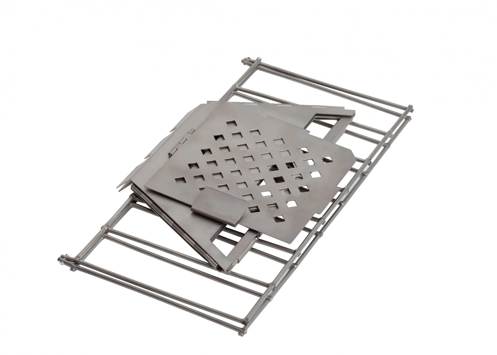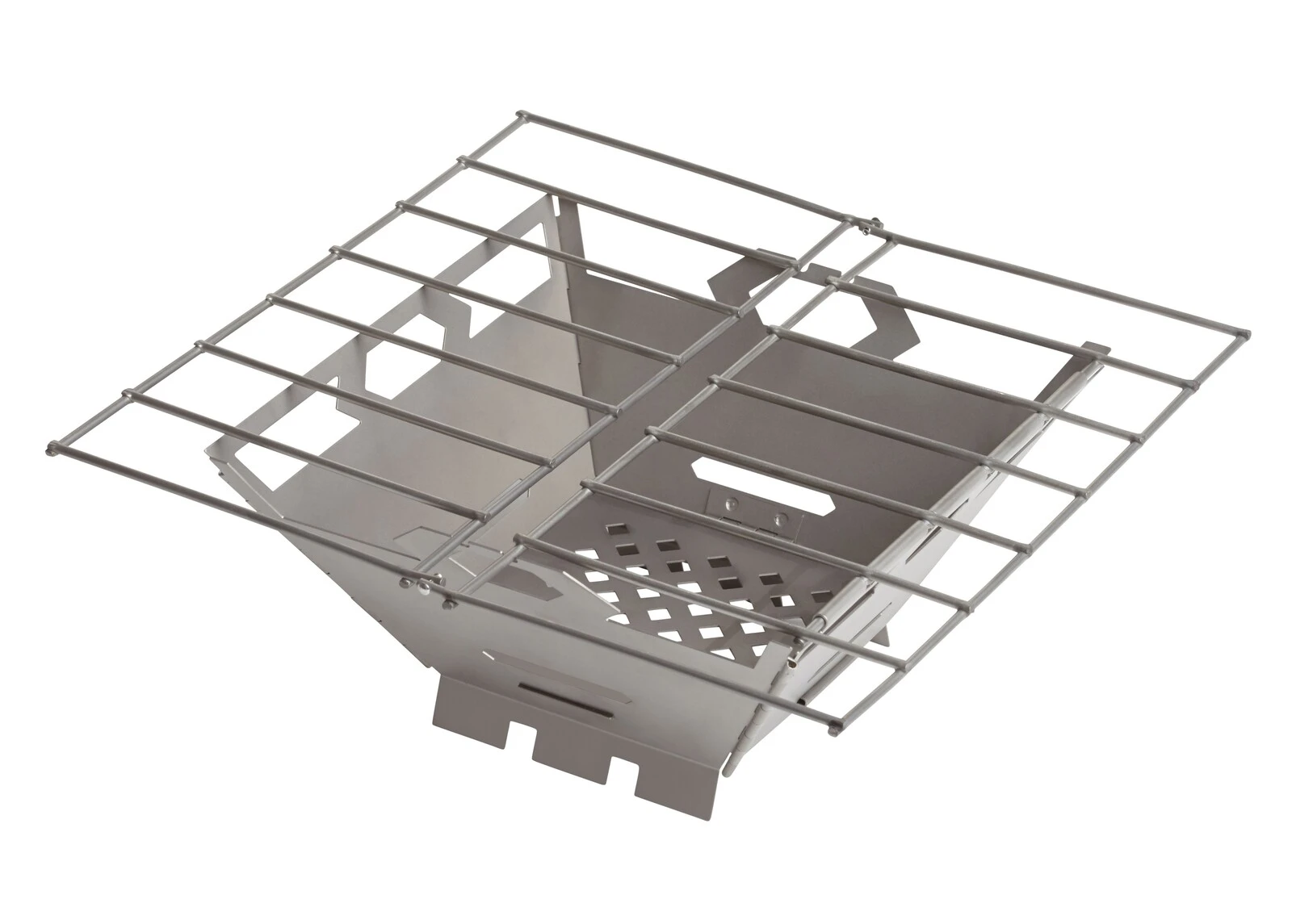 Get grillin’ in the backcountry without charring the Earth or weighing down your pack! The Fire Box Grill features a hinged grate and panel system for easy setup, fold-flat packing, and fire preparation. Just lift the grate and add your fuel. Titanium tent stake skewered kebabs, anyone? FEATURES: Burns biomass fuel Folds flat Hinged grate Easy setup Nylon carrying case SPECIFICATIONS: Weight: 5.8 ounces (164 grams) Size: 8″L x 8″W x 3″H (205 x 205 x 80 mm) Grate size: 8 x 8 inches (205 x 205 mm) Folded size: 8 x 4.25 (205 x 110 mm) Open Height: 3 inches (80 mm) (T-433)